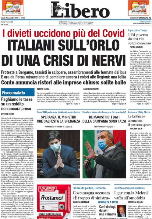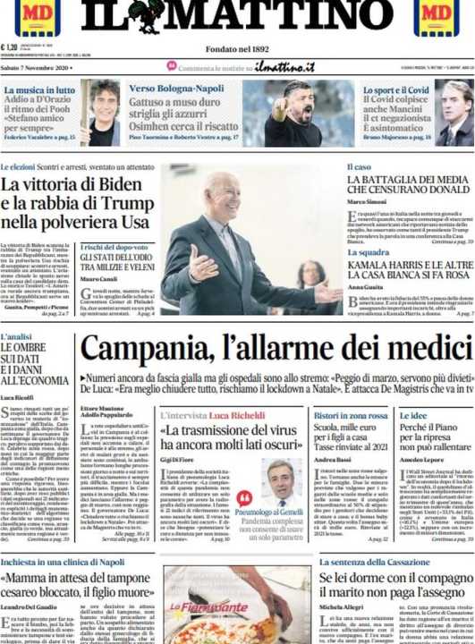 Di seguito la rassegna stampa dei principali quotidiani italiani di oggi, 7 novembre 2020.