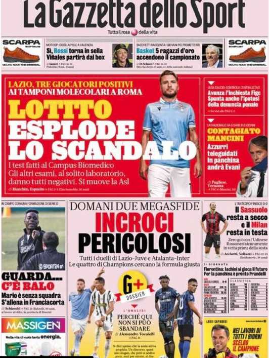 La Gazzetta dello Sport tratta in primo piano il ‘caso Lazio’, soffermandosi sulle ultime vicende relative alla positività di tre atleti.