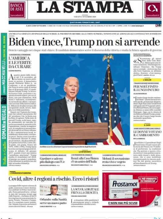 I principali quotidiani italiani aprono con l’esito delle elezioni americane e con diverse analisi del nuovo Dpcm del Governo.