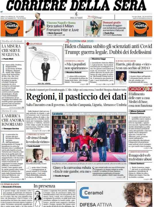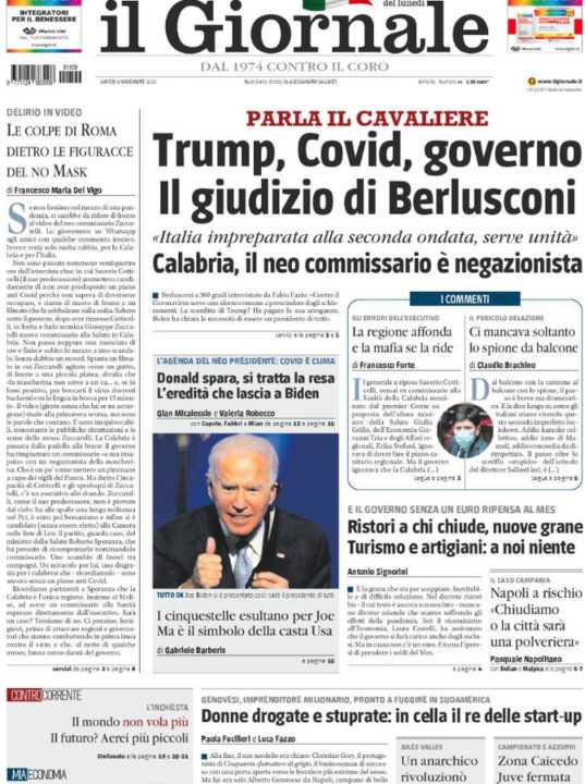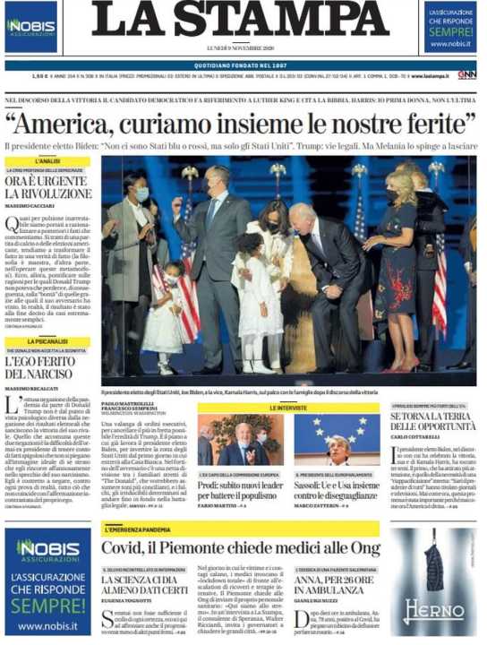 I principali quotidiani italiani aprono ancora con l’esito delle elezioni americane. Ci sono anche diverse analisi dell’attuale situazione politica italiana e aggiornamenti sulla vicenda legata al Covid.