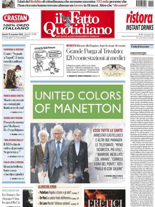 Il Fatto Quotidiano si concentra principalmente sui guai giudiziari della famiglia Benetton.