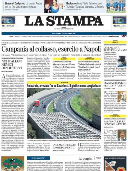 La Stampa apre con il collasso della Campania e la possibilità di inviare l’Esercito.