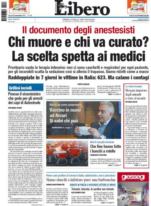 Libero apre con l’allarme dell’aumento dei morti a causa del Covid. Nell’ultima settimana è aumentato il numero dei decessi.