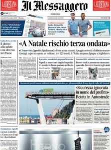 All’interno un’intervista al virologo Galli e un articolo su Autostrade. Previsto l’Esercito a Napoli.