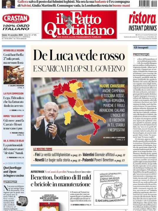 Di seguito la rassegna stampa dei principali quotidiani italiani di oggi, 14 novembre 2020.