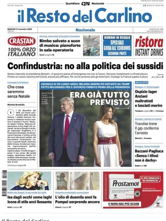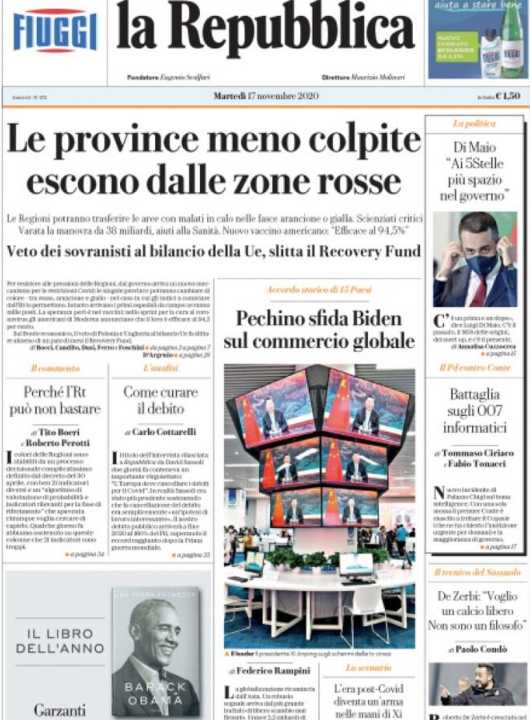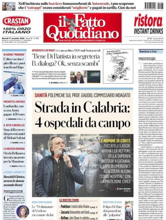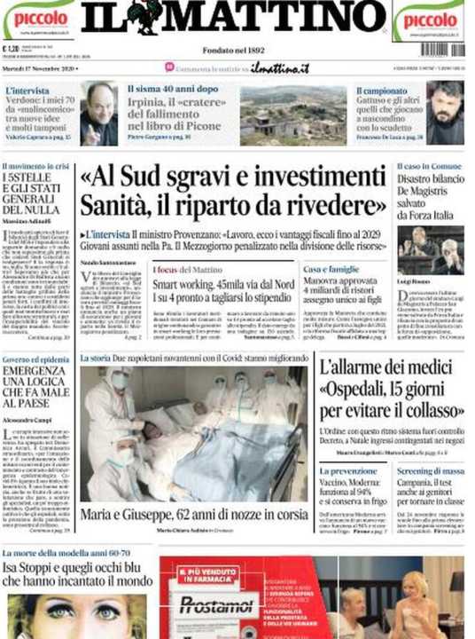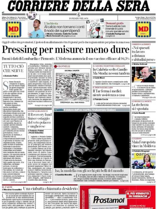 Di seguito la rassegna stampa dei principali quotidiani italiani di oggi, 17 novembre 2020.
