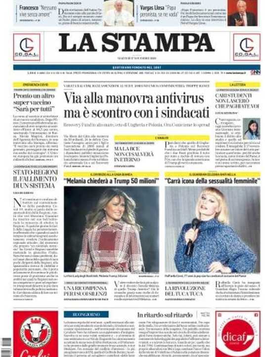 La Stampa apre con l’avvio della manovra finanziaria da parte del Governo. I sindacati avrebbero posto alcuni veti.