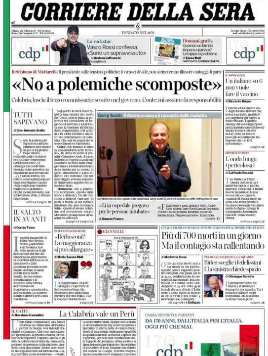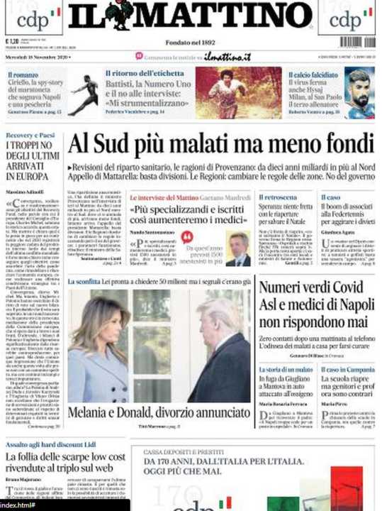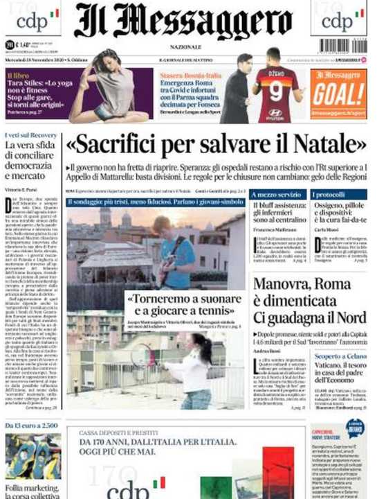 Di seguito la rassegna stampa dei principali quotidiani italiani di oggi, 18 novembre 2020.