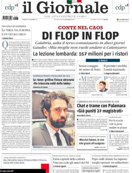 Il Giornale critica fortemente il Governo Conte sulla gestione del commissariamento della Calabria.