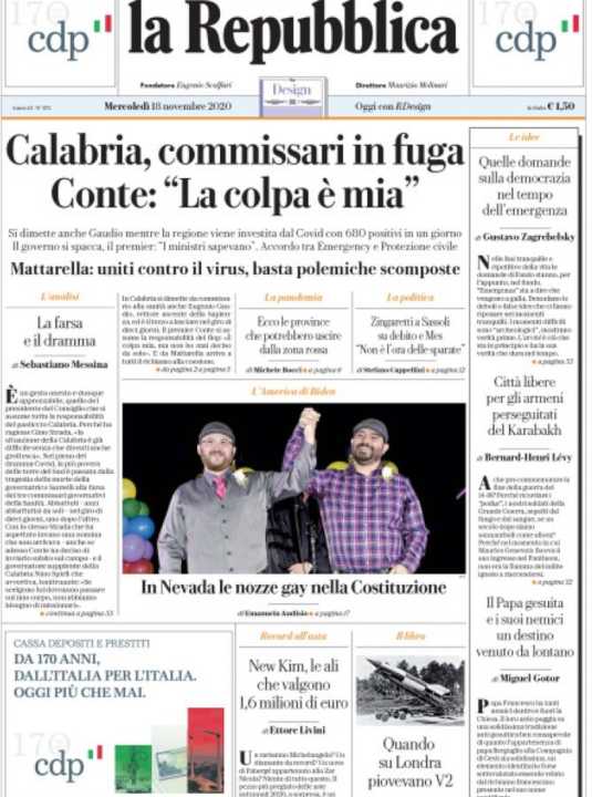 La Repubblica apre con il caos sulle dimissioni del commissario in Calabria. Il Presidente Conte ha deciso di assumersi la responsabilità dell’accaduto.