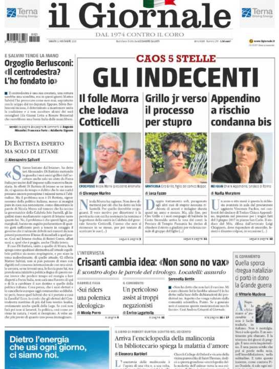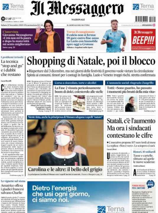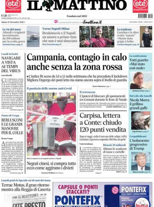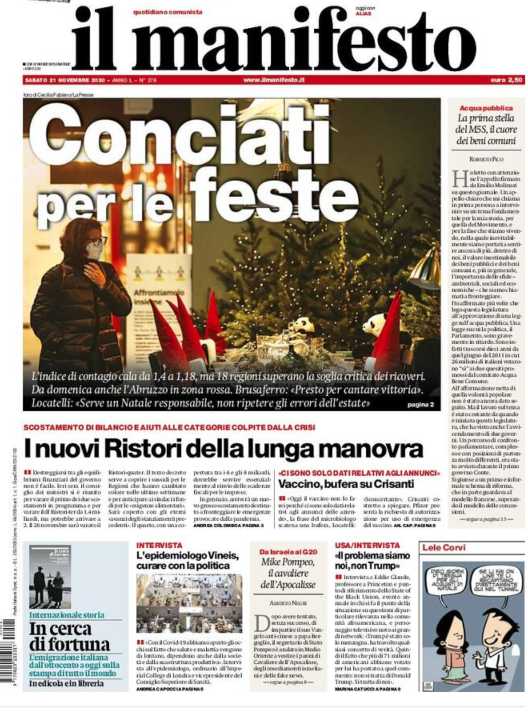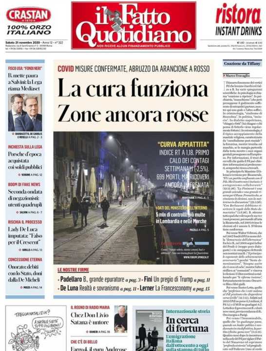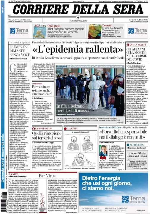 Di seguito la rassegna stampa dei principali quotidiani italiani di oggi, 21 novembre 2020.