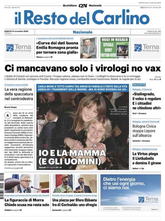 Il Resto del Carlino apre con una forte critica alle parole di Crisanti (poi rettificate) contro il vaccino.
