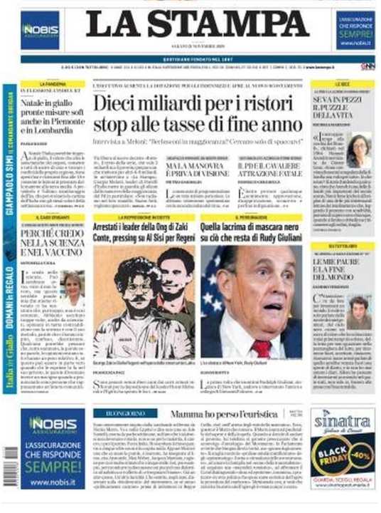 La Stampa annuncia lo stop alle tasse previste per fine anno. Il Governo si prepara a stanziare 10 miliardi per i ristori.