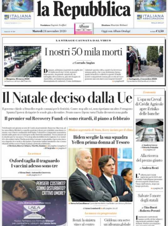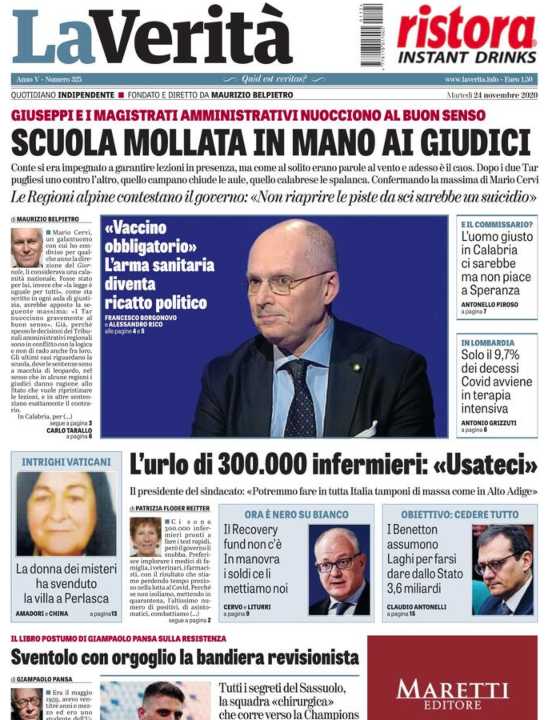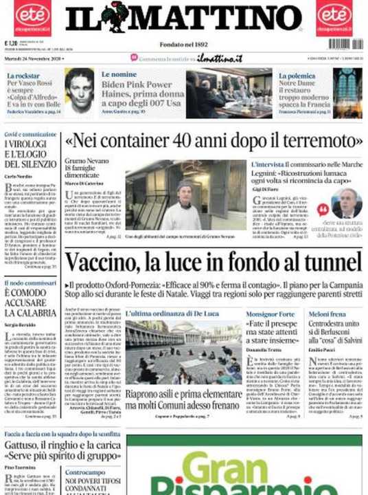Di seguito la rassegna stampa dei principali quotidiani italiani di oggi, 24 novembre 2020.