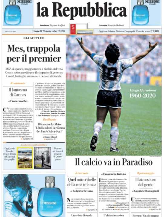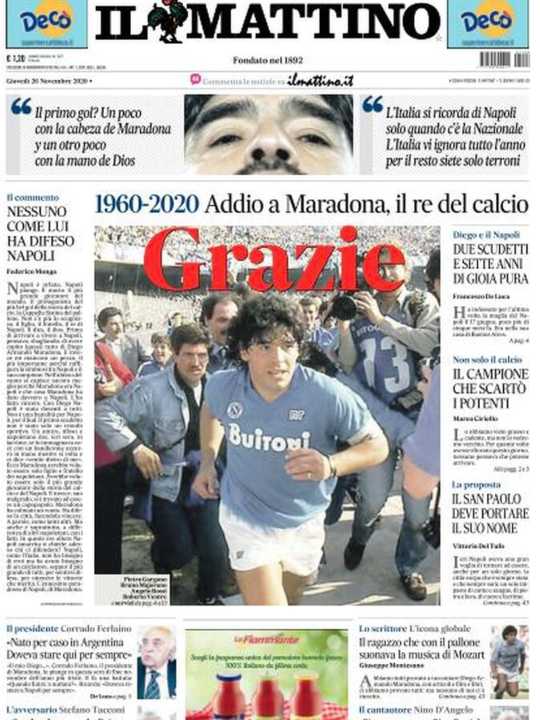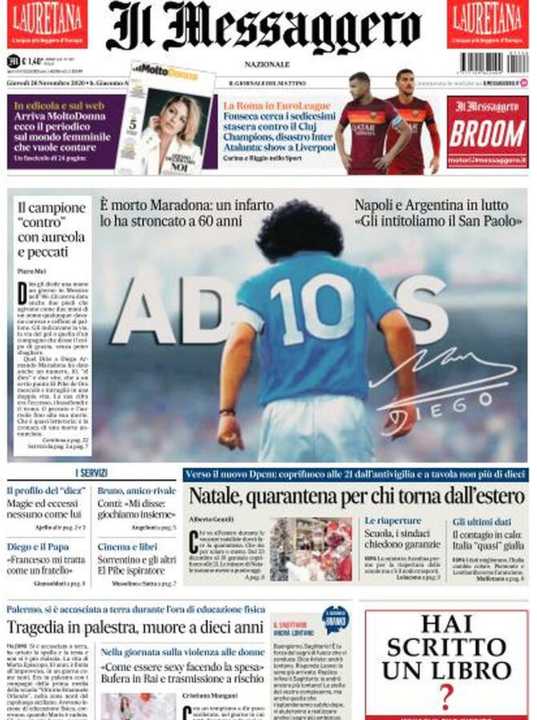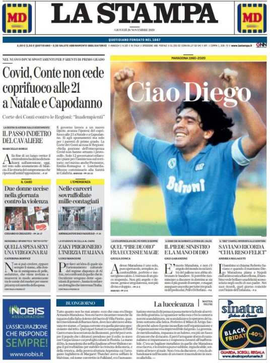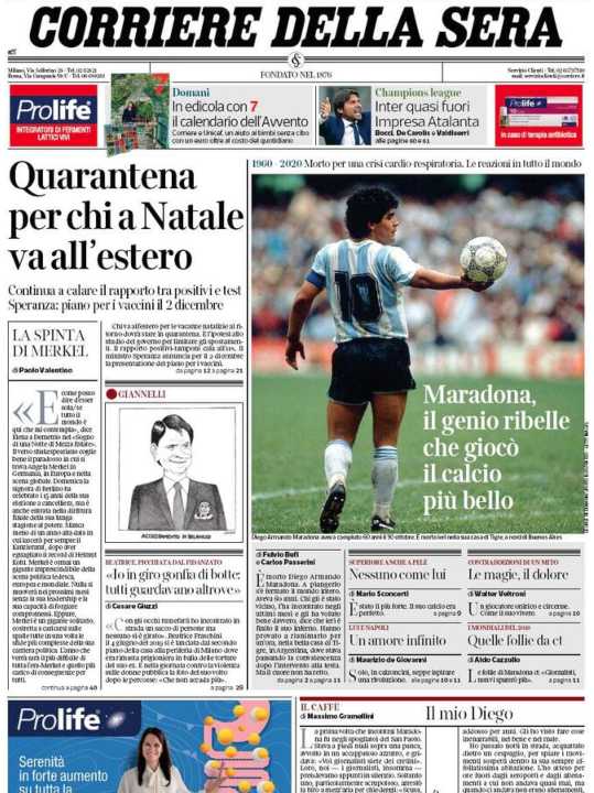 Molto spazio anche alla morte di Diego Armando Maradona, all’interno un interessante editoriale di Massimo Gramellini.