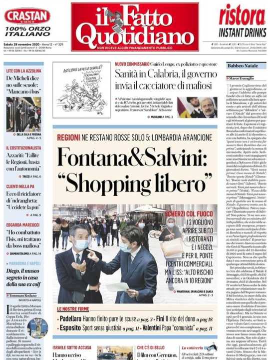Il Fatto Quotidiano apre con la proposta di Fontana e Salvini di consentire lo “shopping libero” durante le vacanze di Natale.