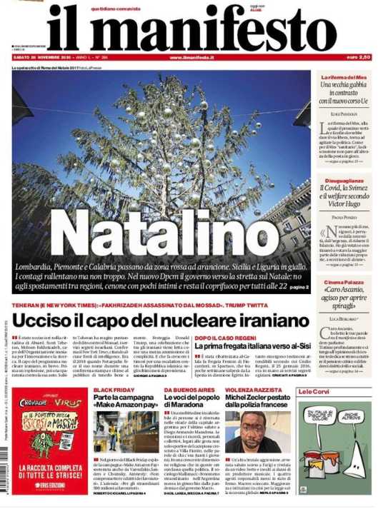 Il Manifesto apre con le nuove zone assegnate ad alcune regioni. Sarà un “Natalino”.