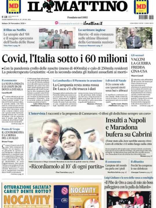 Spazio per la cronaca locale e per la morte di Diego Armando Maradona.