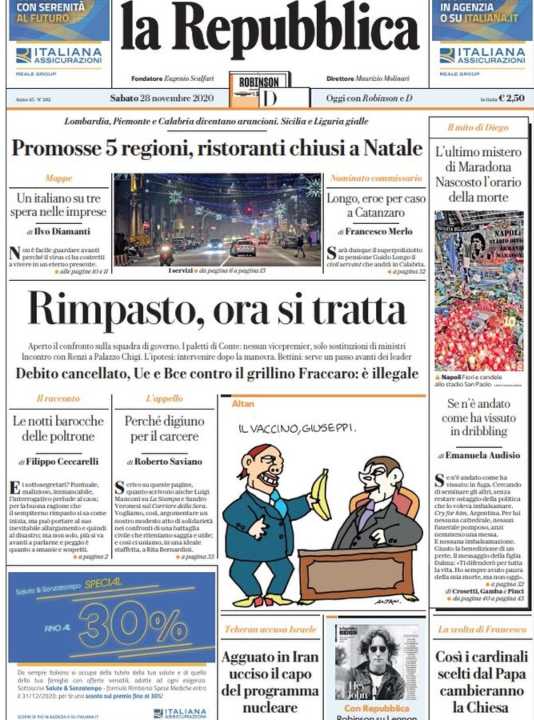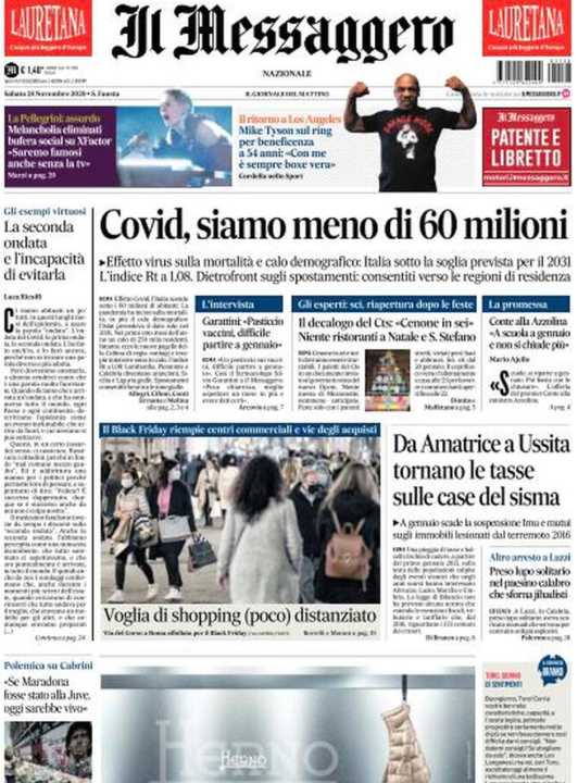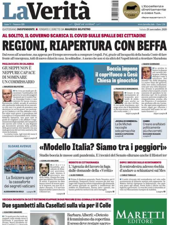 Di seguito la rassegna stampa dei principali quotidiani italiani di oggi, 28 novembre 2020.