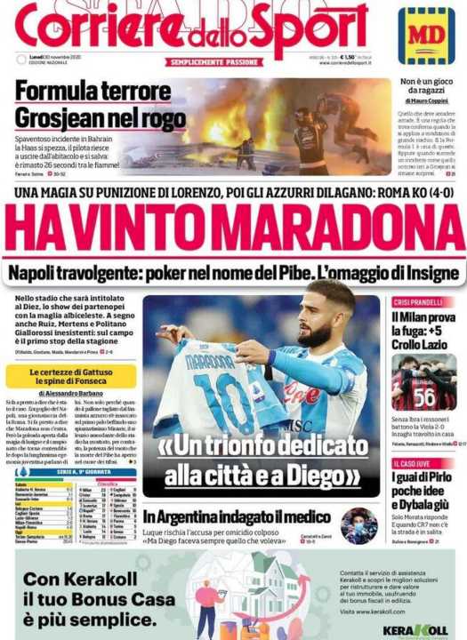 Spazio anche alla vittoria del Napoli contro la Roma. Lorenzo Insigne ha segnato e ha dedicato la vittoria a Diego Armando Maradona.