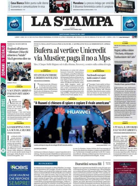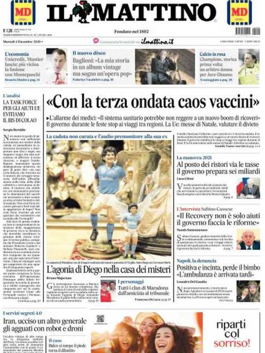 Di seguito la rassegna stampa dei principali quotidiani italiani di oggi, 1° dicembre 2020.