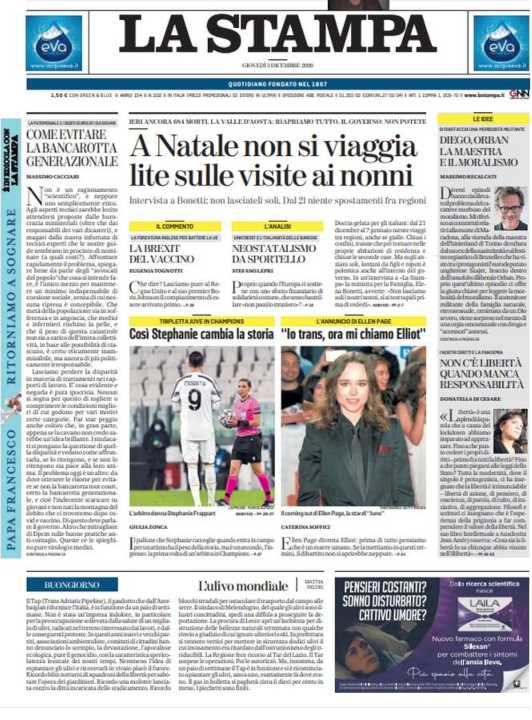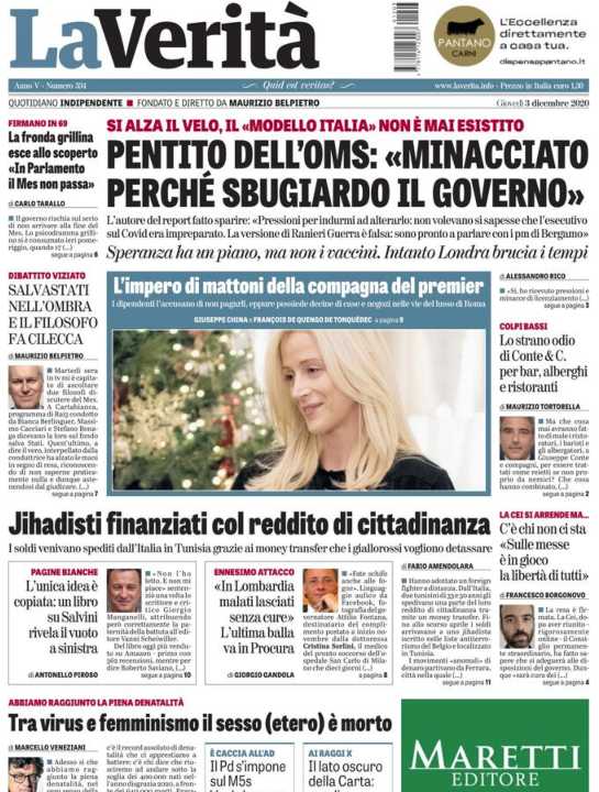 Di seguito la rassegna stampa dei principali quotidiani italiani di oggi, 3 dicembre 2020.