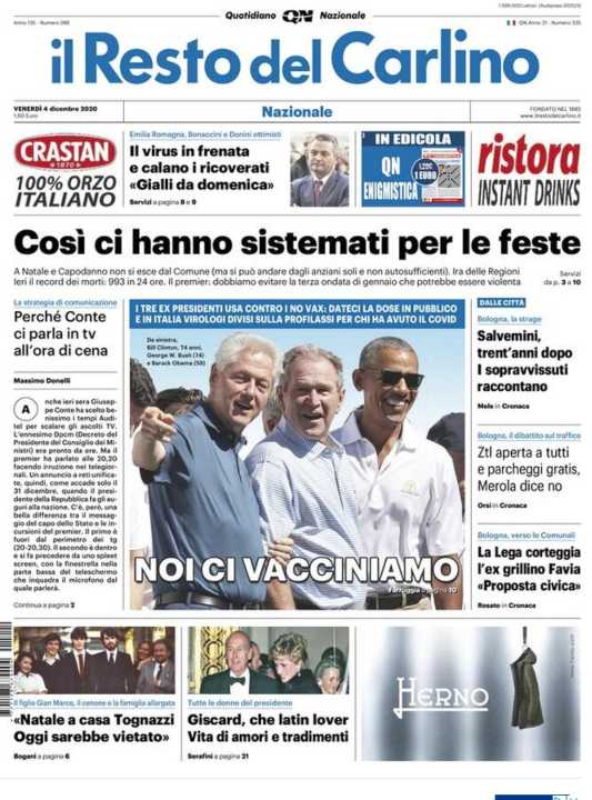 Bill Clinton, George W. Bush e Barack Obama si sono schierati contro i no-vax e hanno dichiarato che si faranno filmare durante la somministrazione del vaccino.