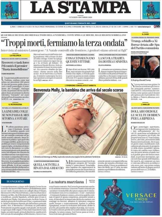 Di seguito la rassegna stampa dei principali quotidiani italiani di oggi, 4 dicembre 2020.