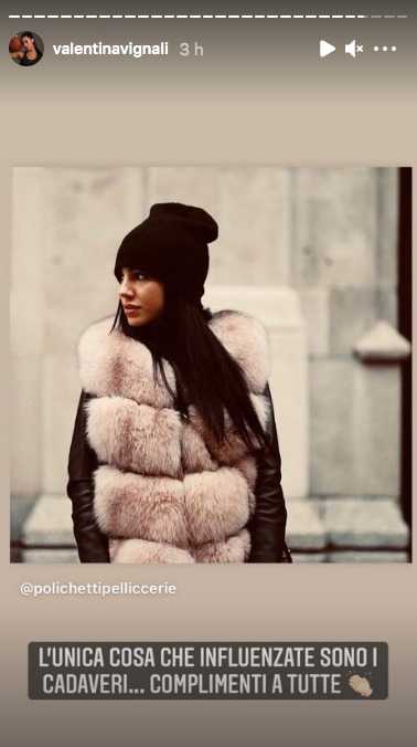 Valentina Vignali, come anticipato, si è duramente scagliata contro tutte le influencer più famose della rete, scegliendo di pubblicare gli scatti da loro realizzati per promuovere un brand che realizza pellicce.